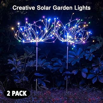 Vova 1 2 Pack Outdoor Solar Firework Lights Waterproof Garden
