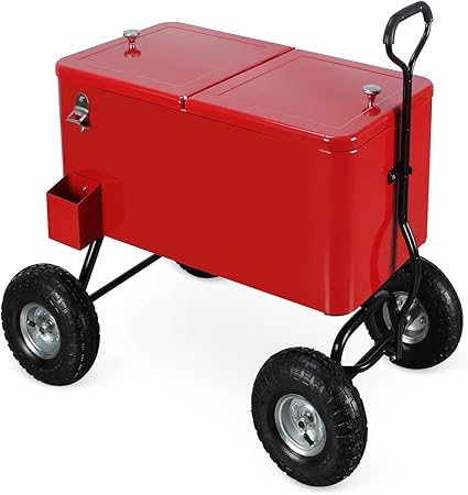 Outdoor 80 Qt Portable Rolling Party Wagon Cooler Cart Backyard
