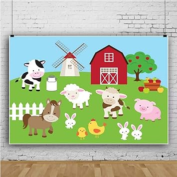 Amazon Com 7x5ft Vinyl Photography Backdrop Cartoon Farm Animals