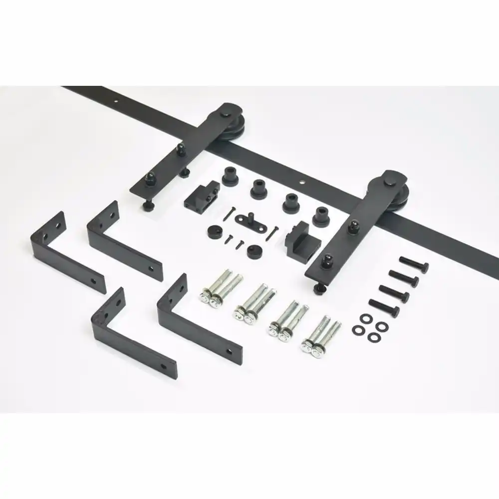 Rustic Black Ceiling Mounted Sliding Barn Door Hardware Kit For