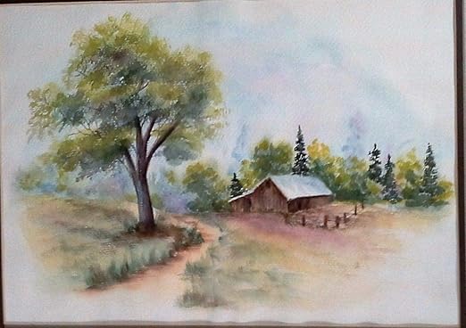 Old Barn Landscape Watercolor Painting Signed By Artist With