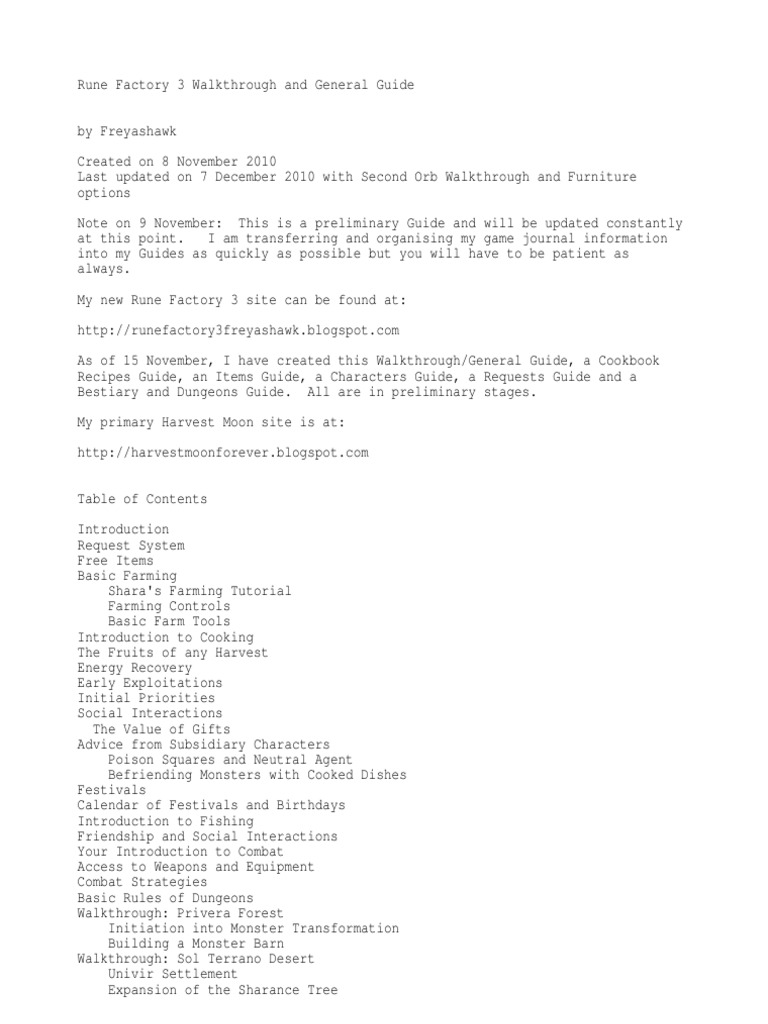 Faq Walkthrough Guide For Rune Factory 2 A Fantasy Harvest Moon